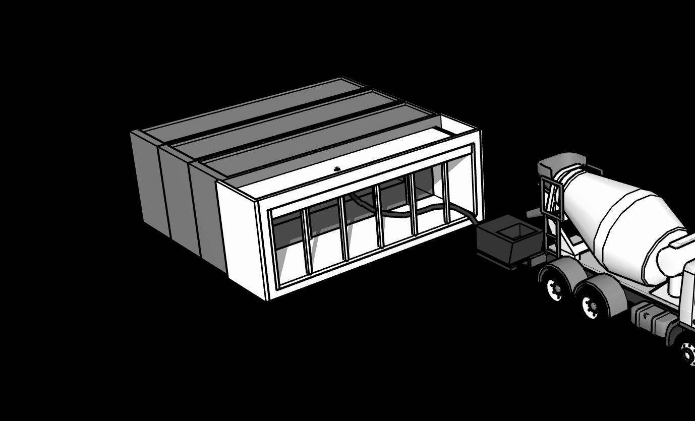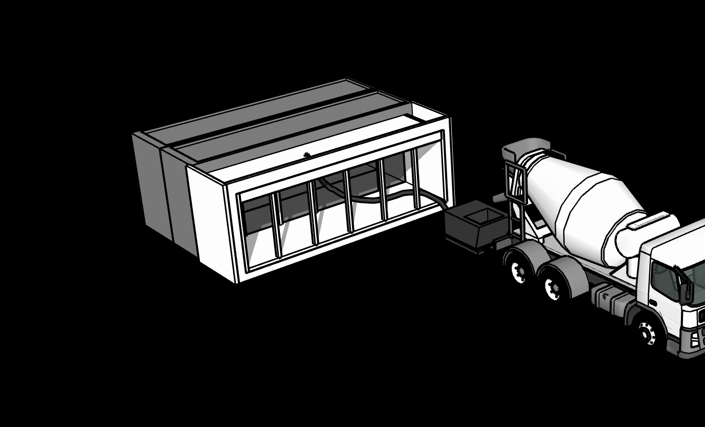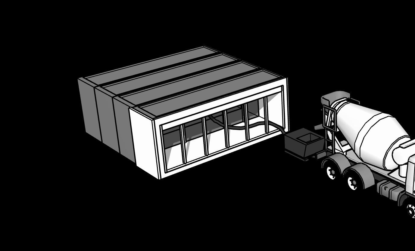 Using standard equipment, a concrete truck fills the machine in under 90 minutes. No specialized or even finishing labor required.