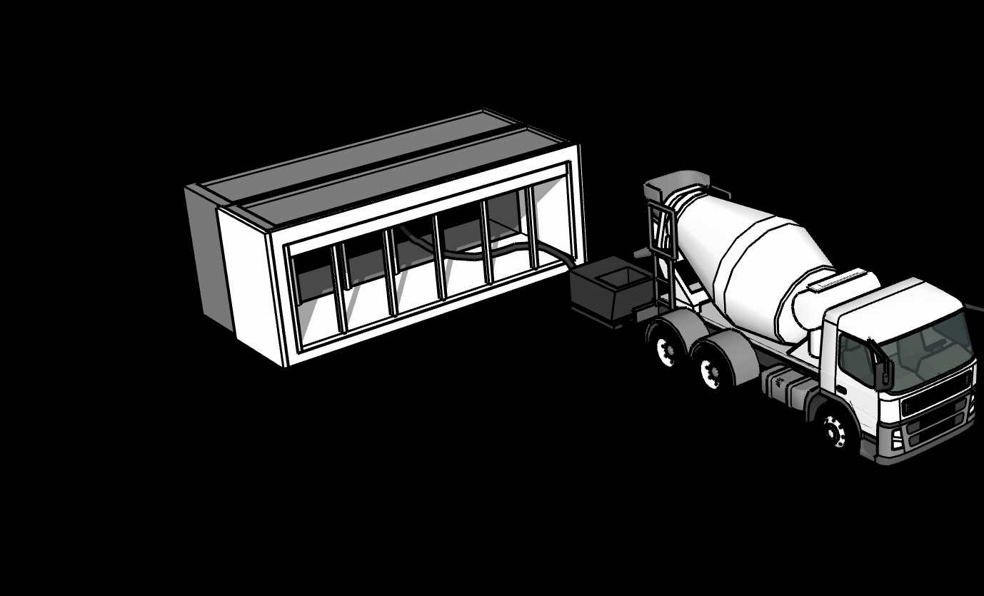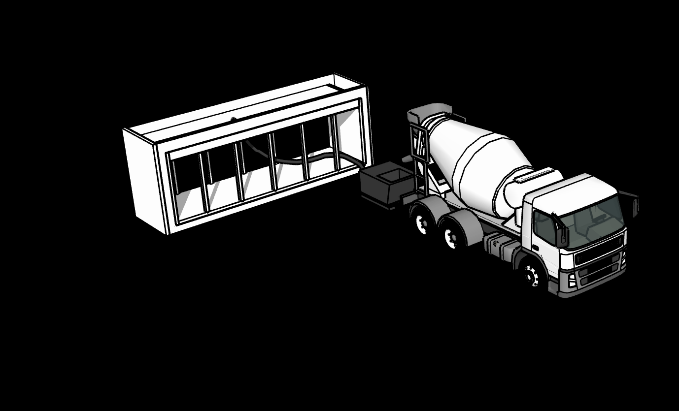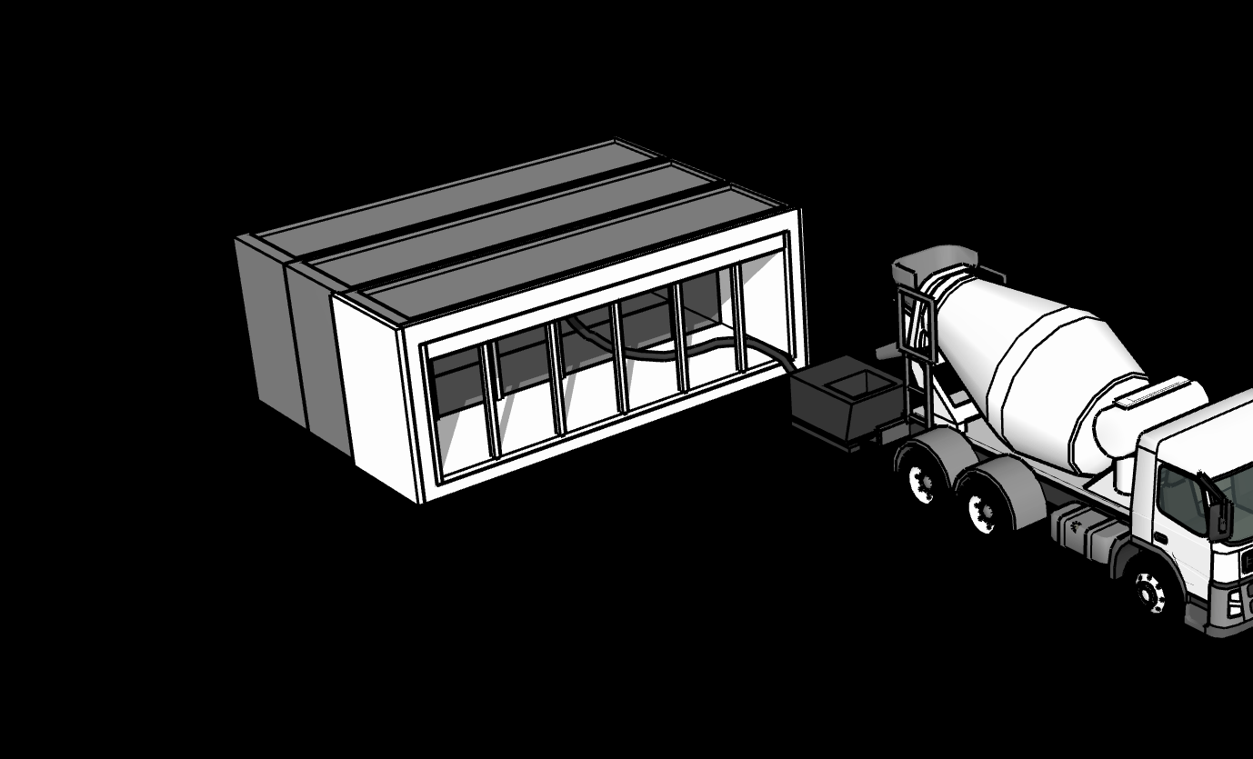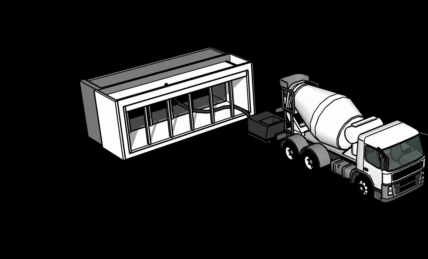 Using standard equipment, a concrete truck fills the machine in under 90 minutes. No specialized or even finishing labor required.